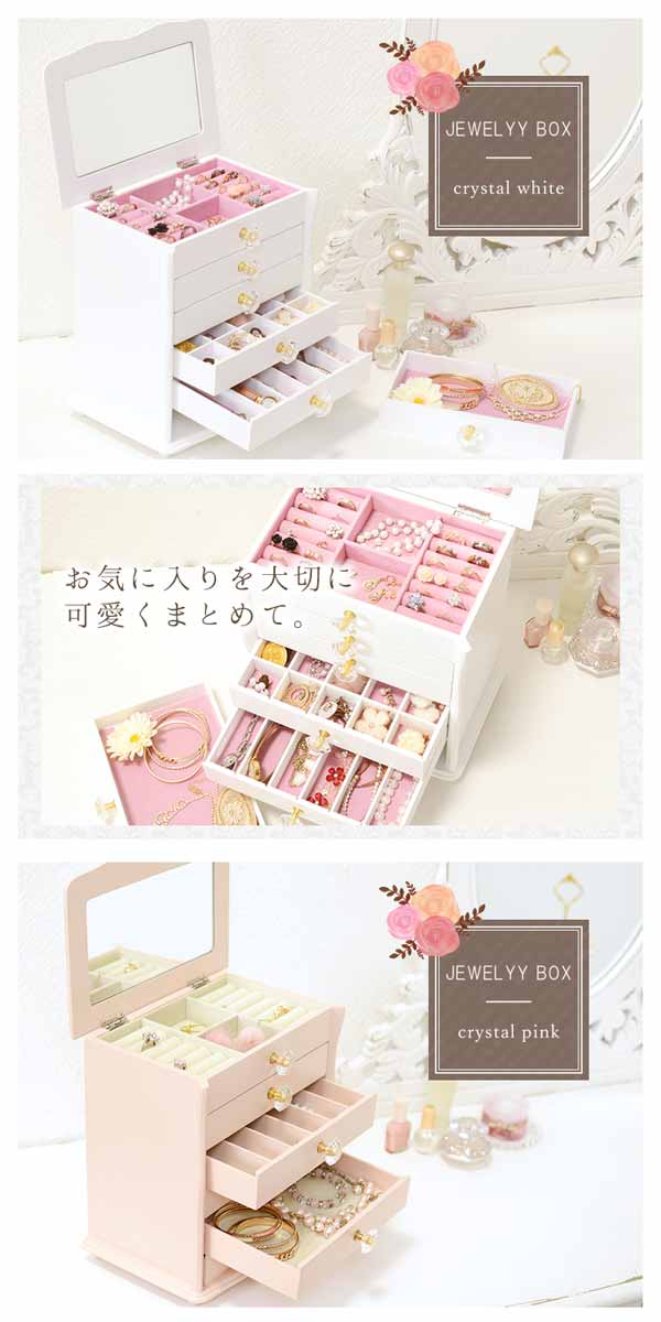 オシャレと収納を兼ね備えた、クリスタル型の取っ手が可愛いジュエリーボックス。