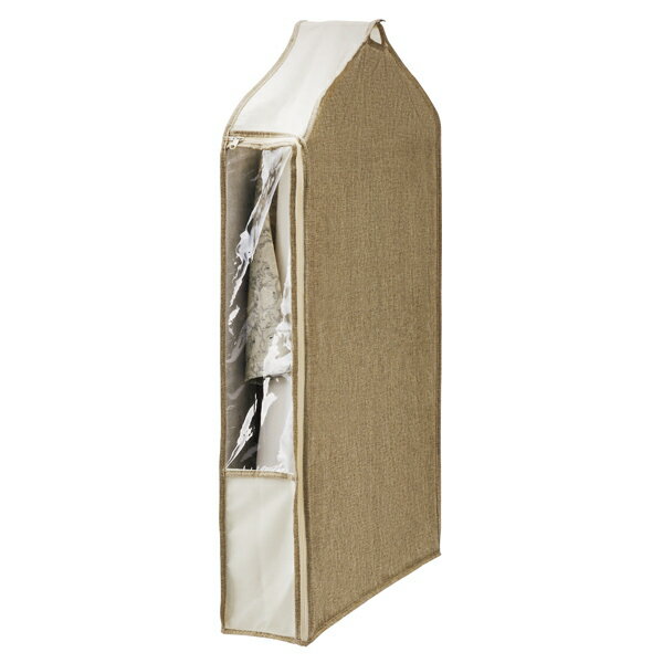 最大外寸(約) 幅16×奥行60×高さ100(cm) 材 質 本体:ポリエステル、ポリプロピレン不織布 透明窓:塩化ビニル樹脂 防虫剤ポケット:ポリエステル ジッパー:亜鉛合金 カラー ライトブラウン 定番のボックスタイプから、クローゼットにぴったりな吊り下げタイプ。